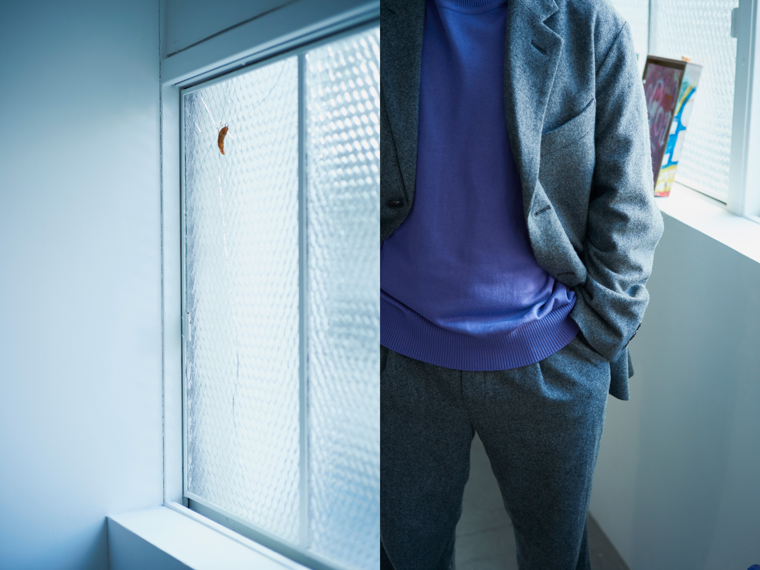 そんな佐藤さんが着用したのは、URUが毎シーズンこだわり、作り続けているウール素材のアイテム。